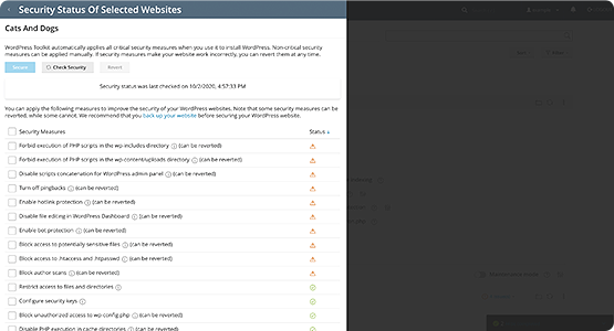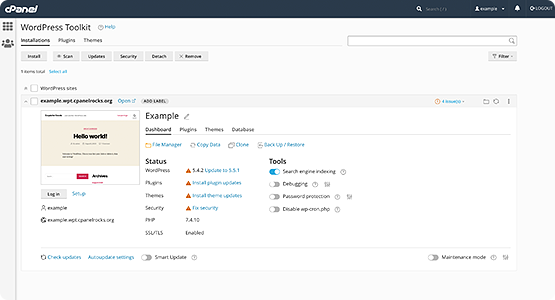 Smart Updates for WordPress Toolkit identifies and analyzes any potential updates for your WordPress installations, then either performs the update at no risk to your live website or notifies you that a potentially dangerous update is now available.